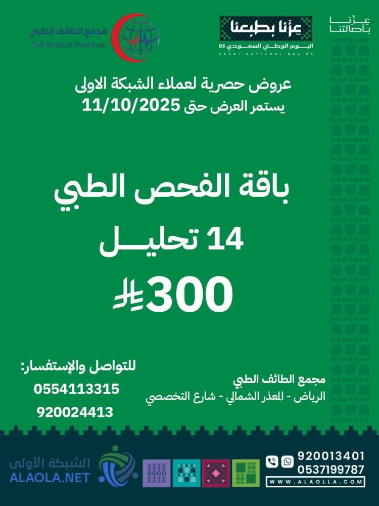 مزود الخدمات :مجمع الطائف الطبيالعنوان :الرياض - المعذر الشمالي - شارع التخصصيرقم الجوال :0554113315920024413