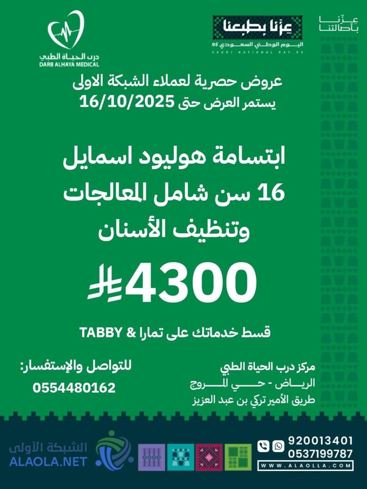 ابتسامة هوليود 16 سن شامل المعالجات وتنظيف الاسنان