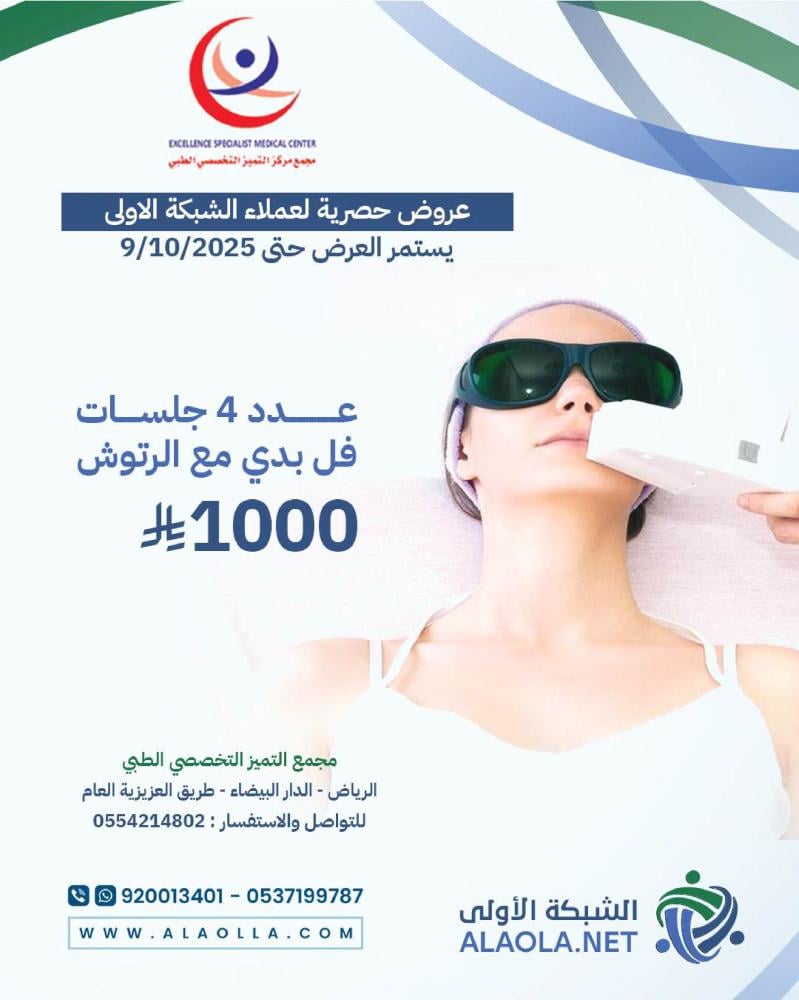مزود الخدمه :مجمع التميز التخصصي الطبيالعنوان:الرياض - الدار البيضاء - طريق العزيزية العامرقم التواصل :0554214802